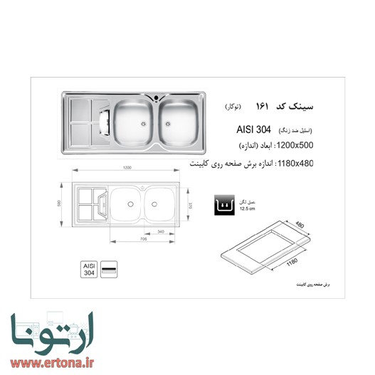 سینک توکار کورین پرنیان استیل مدل PS4230